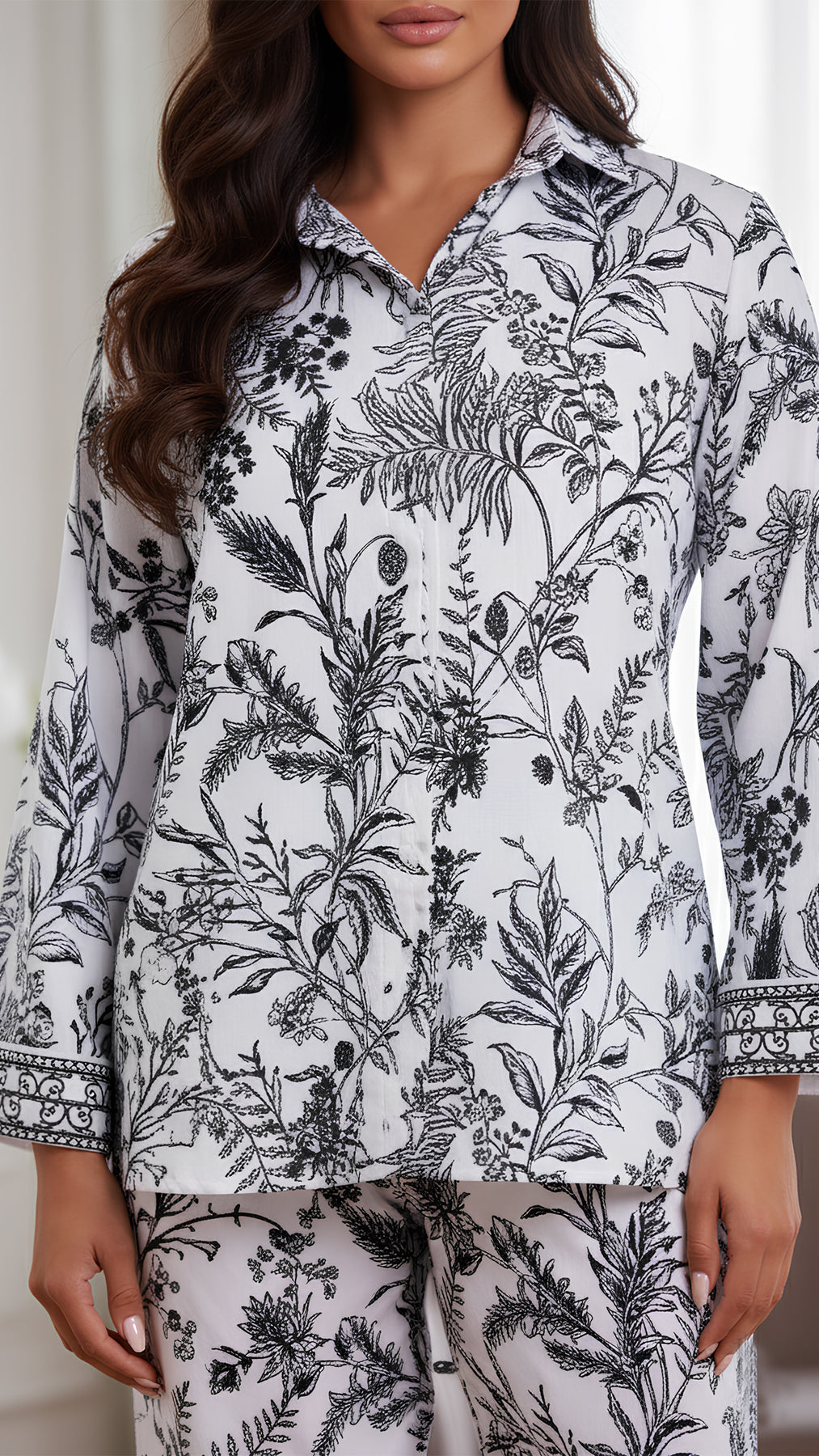 أعد تعريف الأناقة اليومية مع هذا الطقم المتناسق — مصنوع من قماش Cambric الناعم الحريري القابل للتنفس مع انسيابية أنيقة ولمعة ناعمة. القصة المريحة تبرز جمال جميع الأجسام، بينما تمنح السروال الواسع والبلوزة الانسيابية التوازن المثالي بين الراحة والرقي.