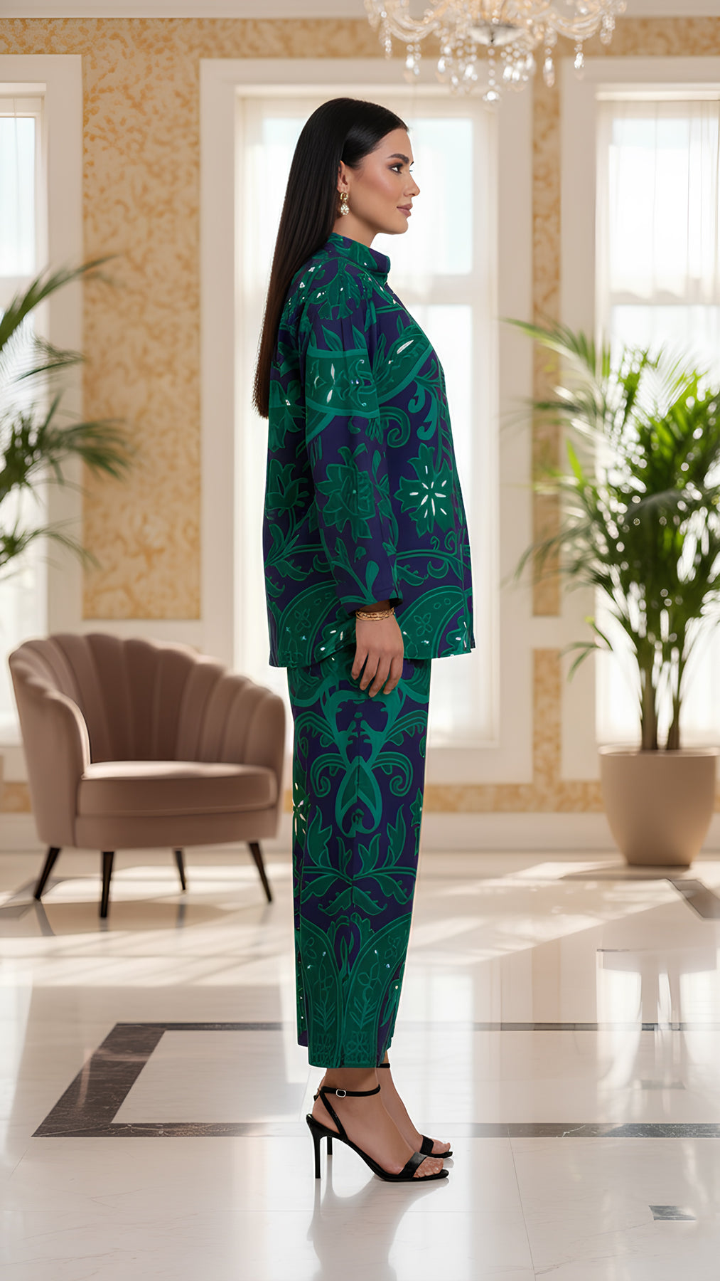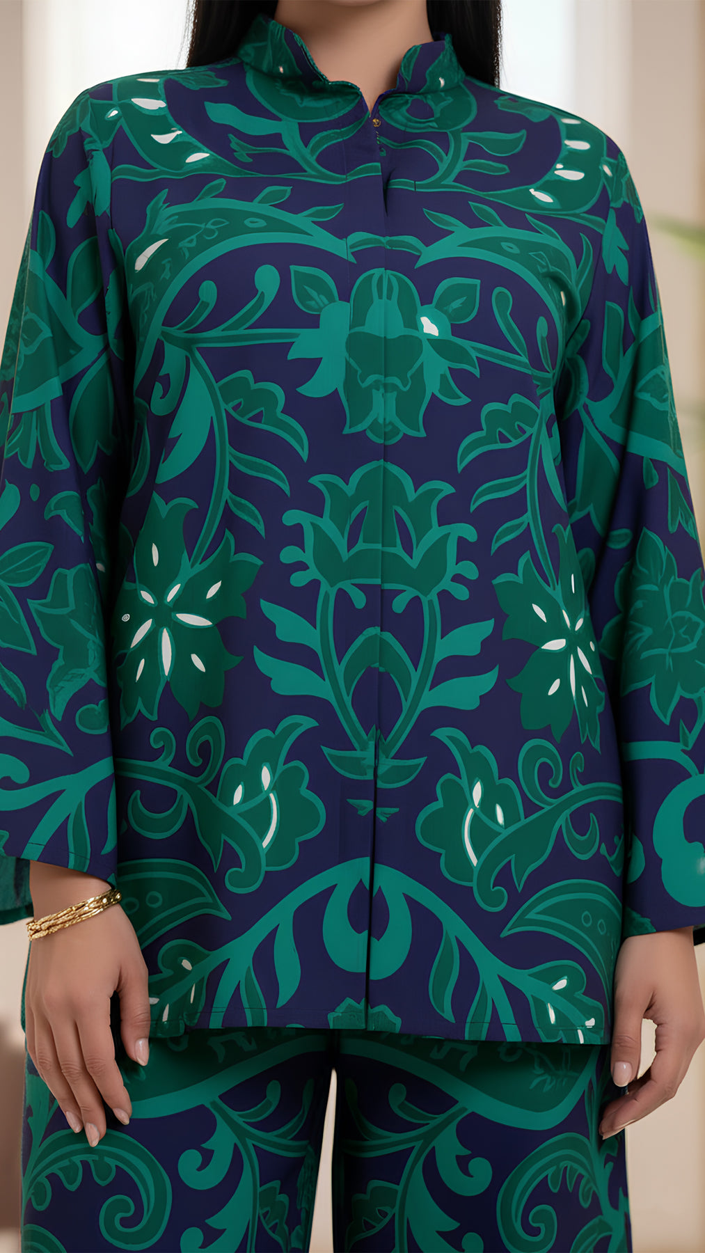 ارتقِ بخزانة ملابسك اليومية مع هذا الطقم المتناسق — مصنوع من قماش Cambric الخفيف الذي ينسدل بشكل جميل ويضيف لمسة لمّاعة وأنيقة. بفضل قصته المريحة وتفاصيله المصممة بعناية، يجمع بين الراحة والرقي العصري بسهولة.