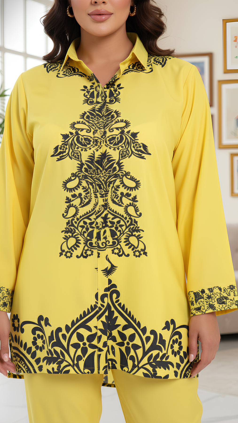 أعد تعريف الأناقة اليومية مع هذا الطقم المصنوع من قماش الكامبريك الناعم والنافس، ذو الانسيابية الرشيقة واللمعان الناعم. التصميم الفضفاض يبرز جمال كل قامة، بينما توازن البنطلونات ذات الأرجل الواسعة والبلوزة السائلة بين الراحة والأناقة.
