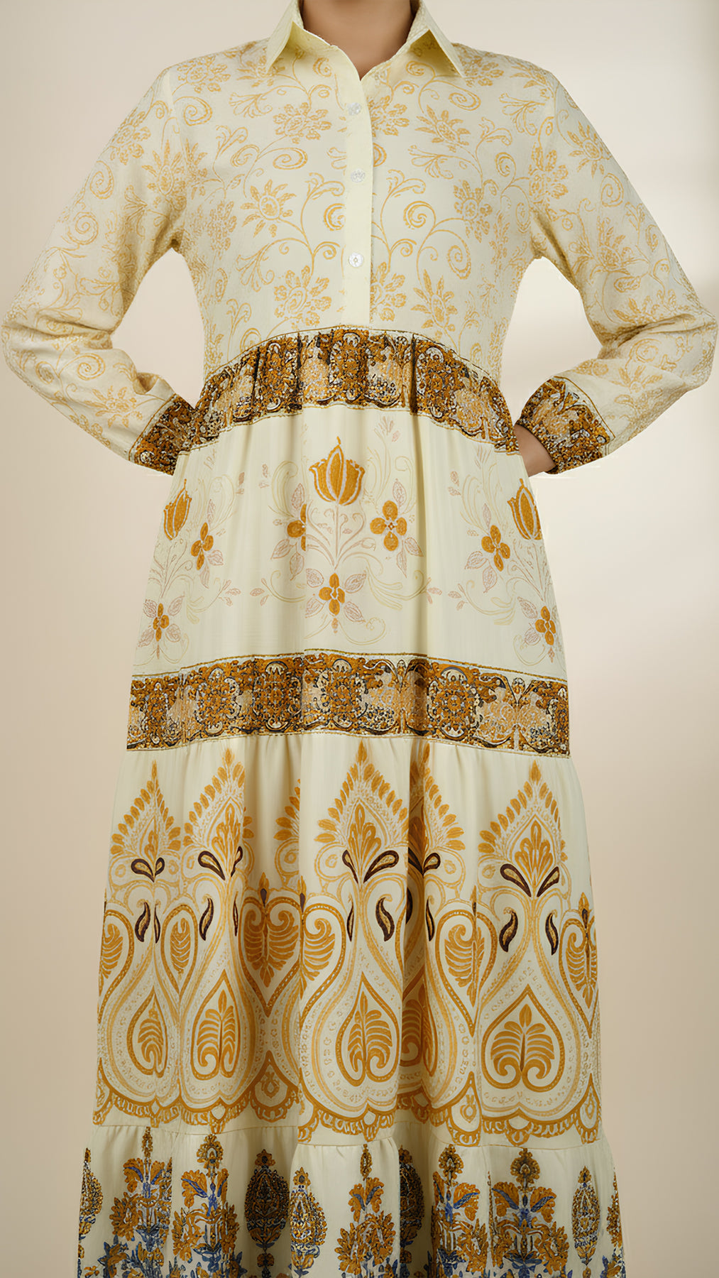 Meloria Dress radiates soft femininity with its graceful tiers and refined detailing. Perfect for romantic days or charming gatherings, it blends airy comfort with timeless sophistication. A standout choice among floral dresses for women who appreciate delicate beauty, warm tones, and effortless charm.