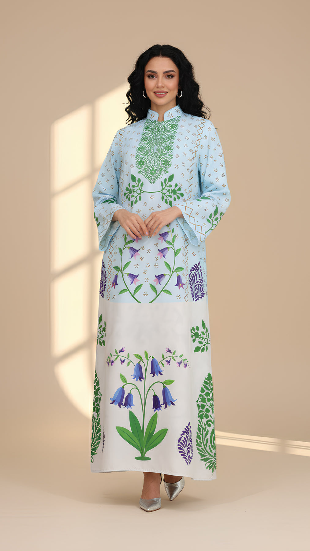 Slip into luxe ease with this kaftan—designed to blend comfort with quiet sophistication. Crafted from premium breathable fabric suitable for all seasons, it drapes beautifully with a soft sheen and breathable feel that moves with you.
