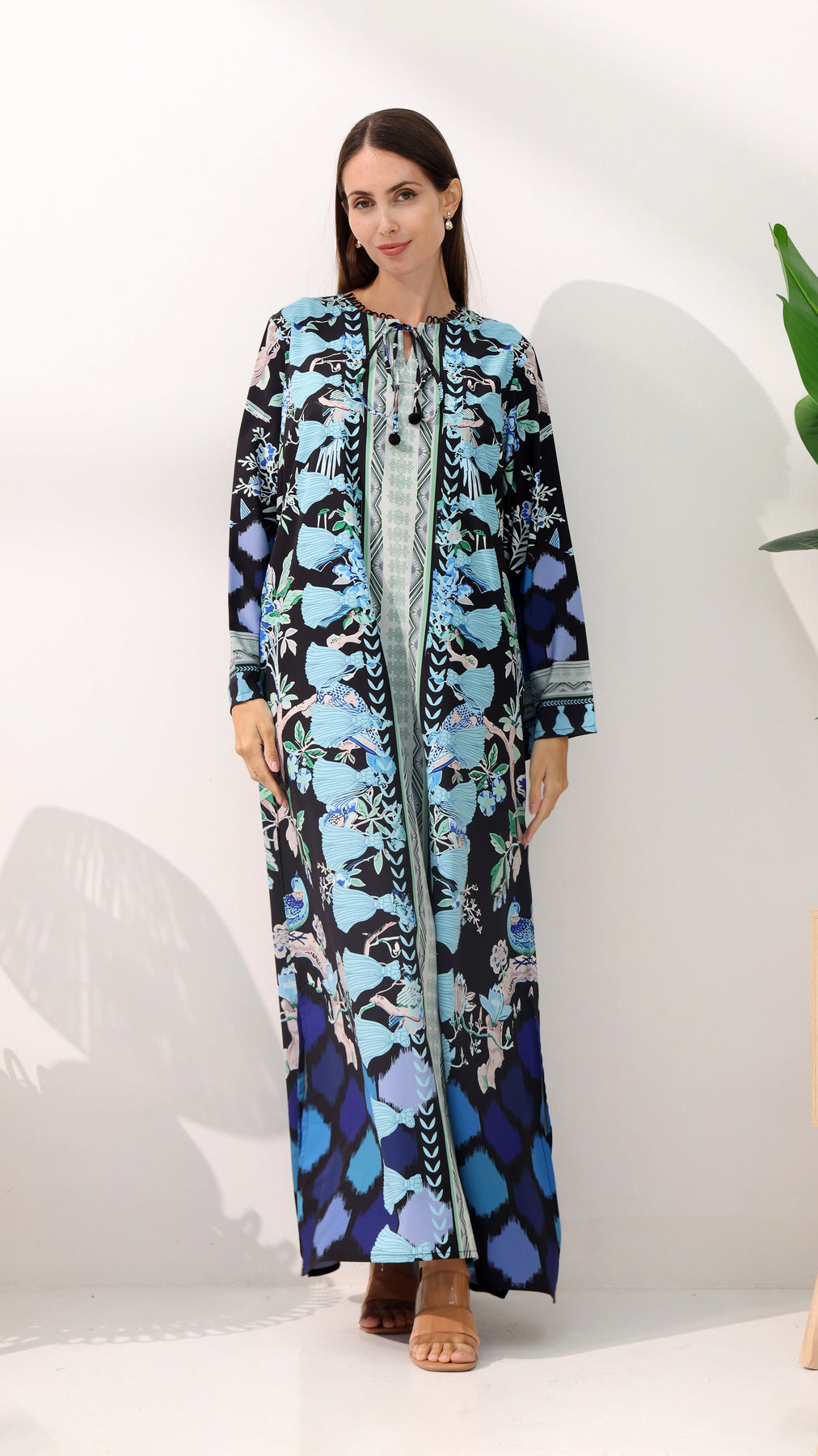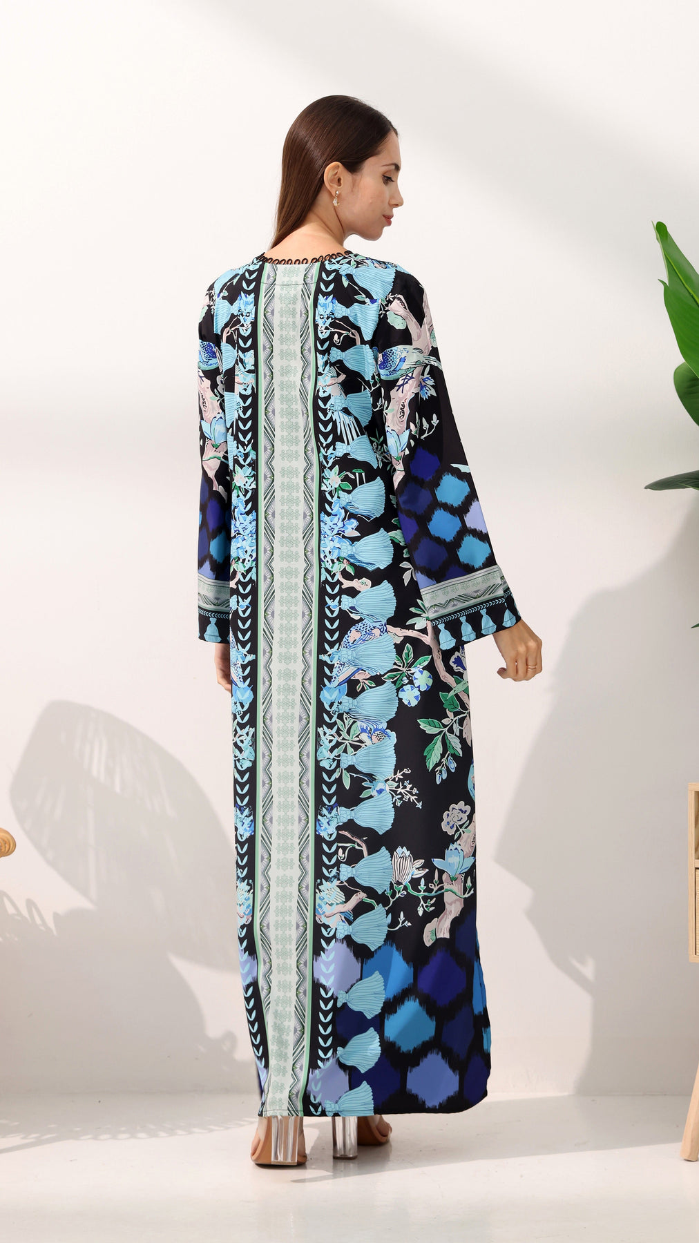 Chic, fluid, and effortlessly elegant—this Kaftan is crafted for the modern muse. Made from premium breathable fabric suitable for all seasons, it drapes beautifully with a soft sheen and breathable feel that moves with you all day.