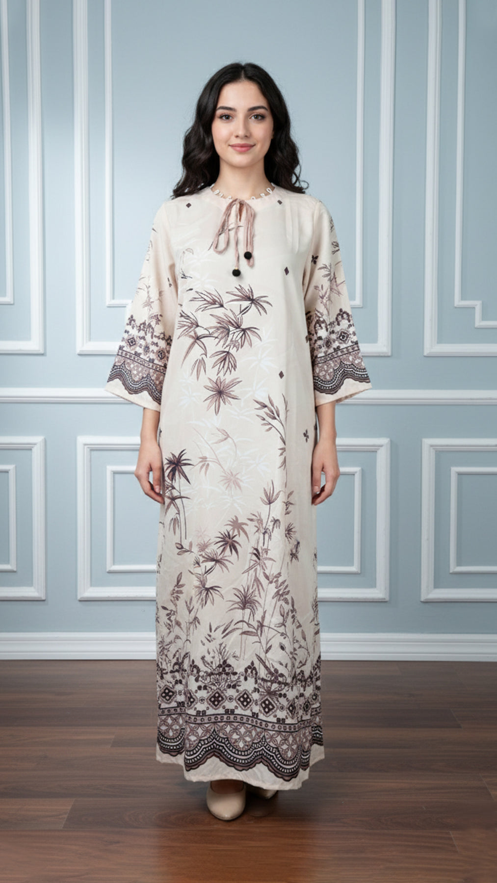 Chic, fluid, and effortlessly elegant—this Kaftan is crafted for the modern muse. Made from premium breathable fabric suitable for all seasons, it drapes beautifully with a soft sheen and breathable feel that moves with you all day.