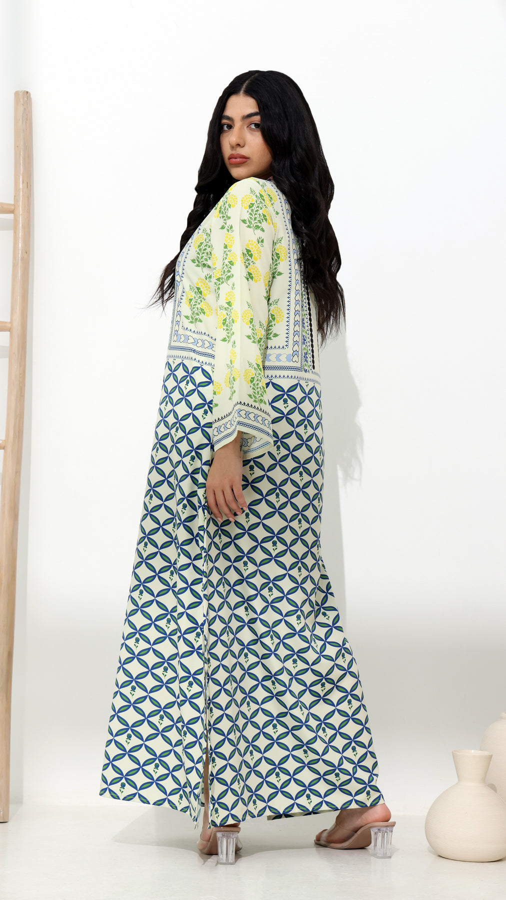 Chic, fluid, and effortlessly elegant—this Kaftan is crafted for the modern muse. Made from premium breathable fabric suitable for all seasons, it drapes beautifully with a soft sheen and breathable feel that moves with you all day.