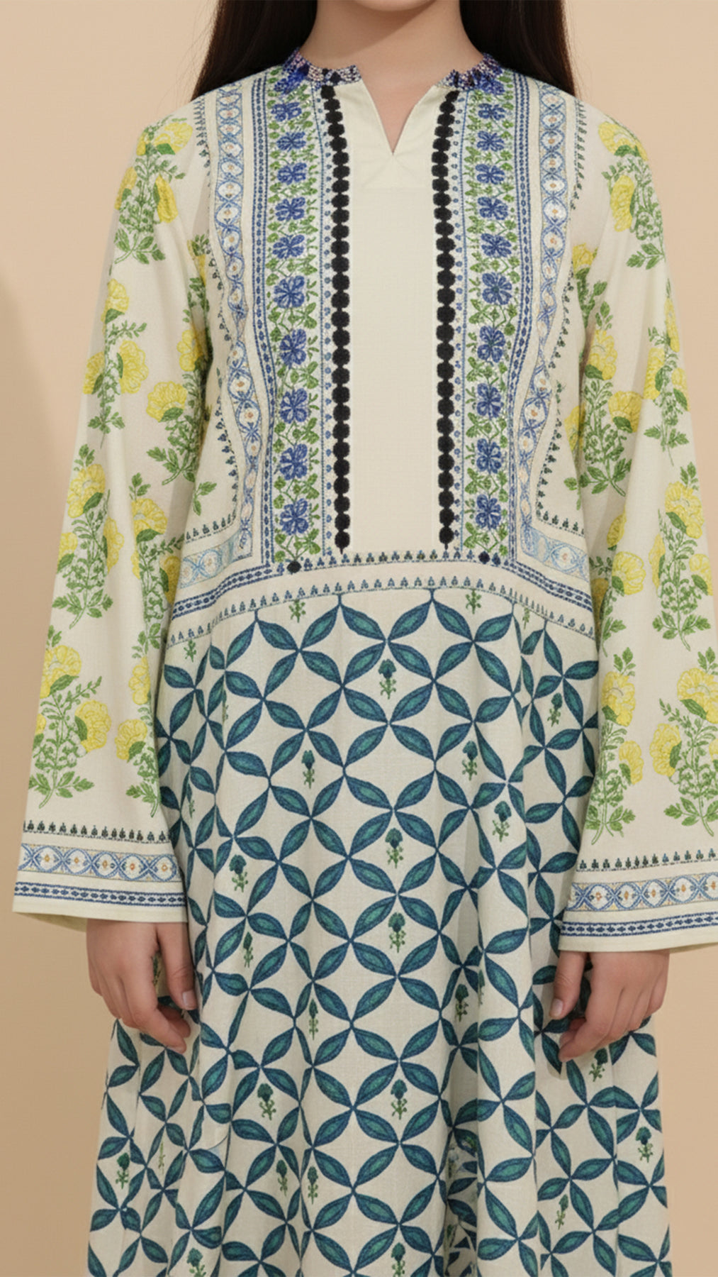 Chic, comfortable, and effortlessly graceful — Seravine is a charming kaftan dress for girls designed with playful elegance in mind. Crafted from premium breathable fabric suitable for all seasons, it drapes softly with a gentle sheen and easy movement, keeping her stylish and comfortable all day long.